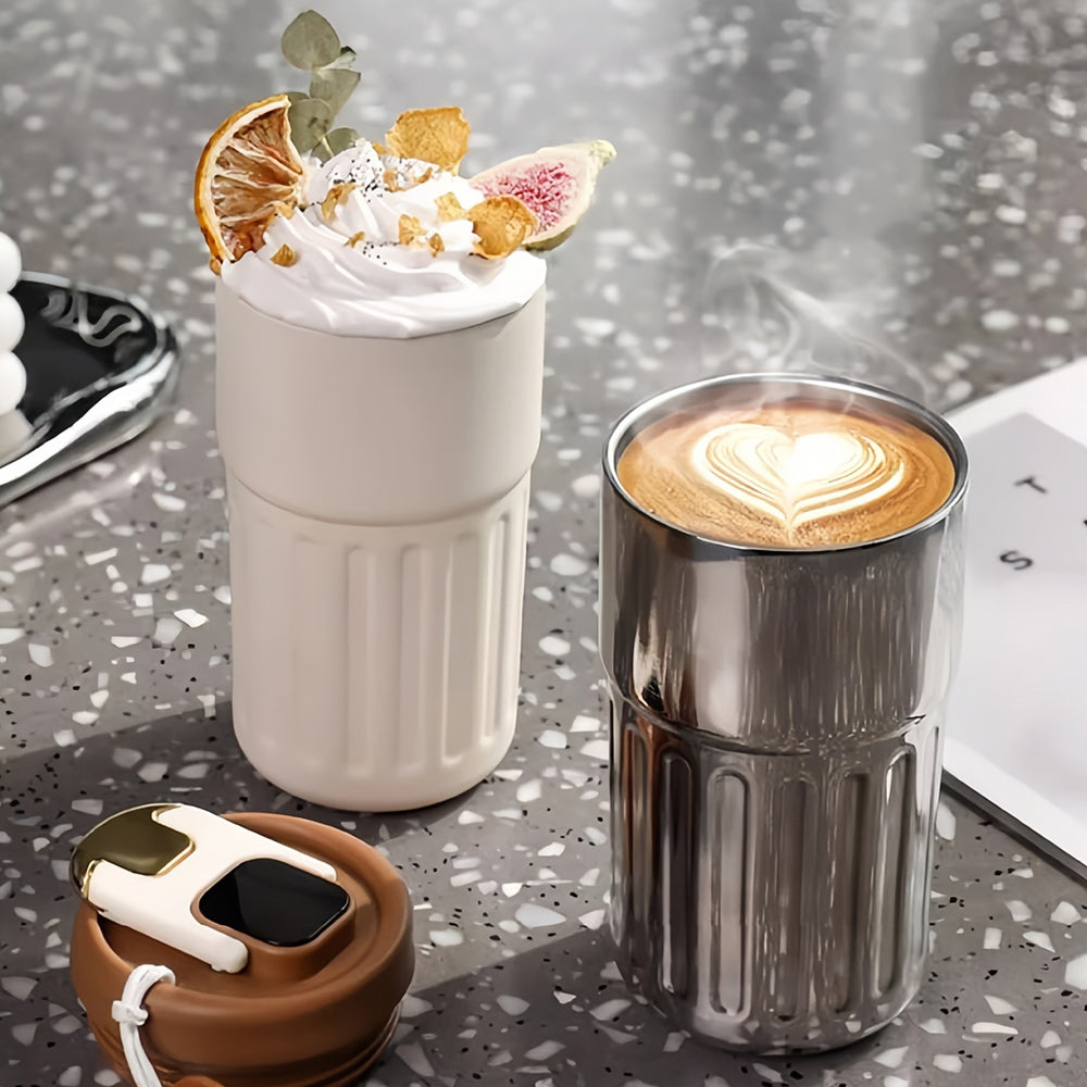- Matydami ekranėlyje tikslią karštos arbatos ar kavos temperatūrą išvengsite atsitiktinių nudegimų. Termoso sienelės padengtos dvigubu izoliaciniu sluoksniu. Turi dangtelį, kuris tvirtai užsidaro ir neleidžia viduje esančiam skysčiui išbėgti. Termosą galima drąsiai nešiotis rankinėje ar kuprinėje!