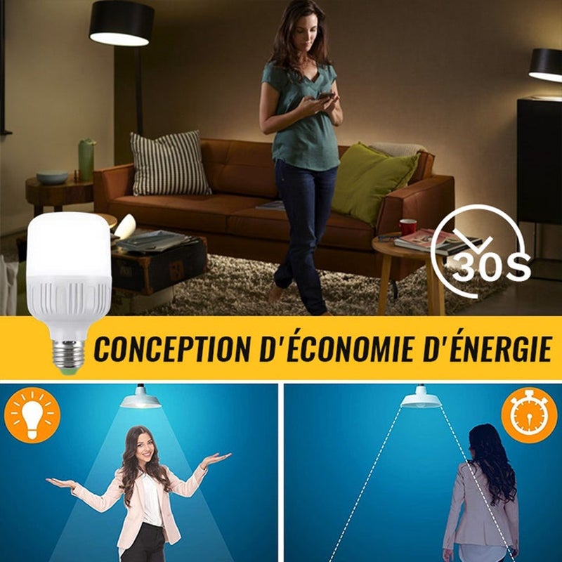 - LED lemputė turi išmanų garso jutiklį. Aptikus didesnį nei 50 decibelų garsą, lemputė automatiškai įsijungia.