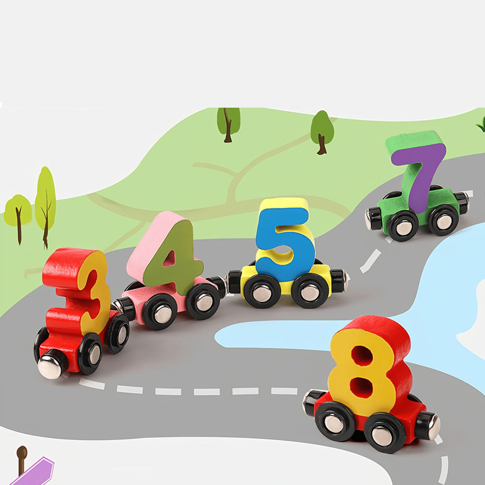 - Tai įdomus ir lavinantis kūrybiškumą žaidimas, kurio metu vaikai turi sujungti traukinių vagonėlius nuo mažiausio skaičiaus iki didžiausio. Sujungti vagonėliai tvirtai laikosi ir gali važiuoti visomis kryptimis. Vagonėliai pagaminti iš aukštos kokybės medienos, kuri yra saugi žaisti vaikams.