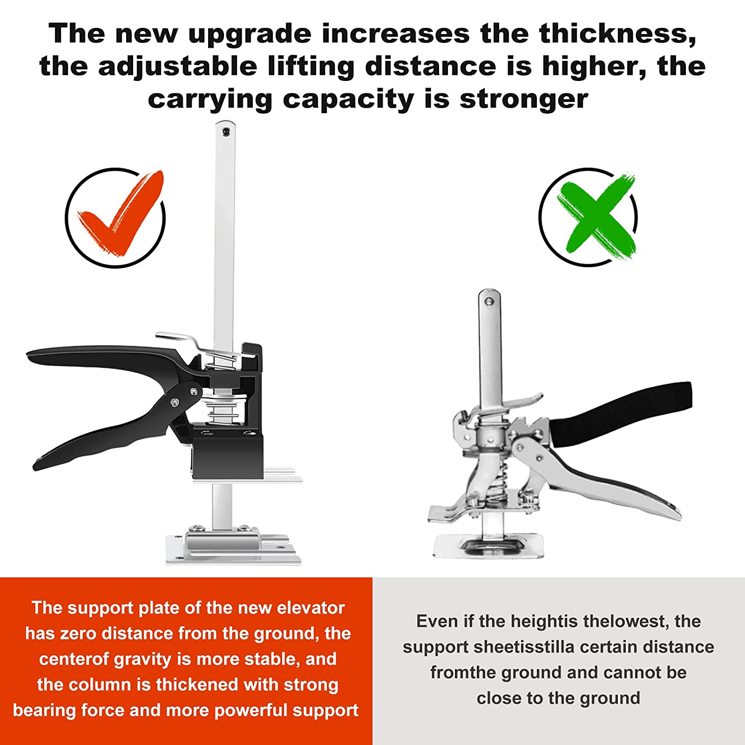- Keltuvas gali iškelti iki 150 kg svorį! Įrankis leidžia tiksliai reguliuoti aukštį, kai yra tvirtinamos spintelės ar kiti daiktai. Puikiai tinka dengiant grindis, padeda išlyginti dangą. Įrankis palengvina remonto bei montavimo darbus akimirksniu! Jį patogu ir lengva naudoti siauruose erdvėse.