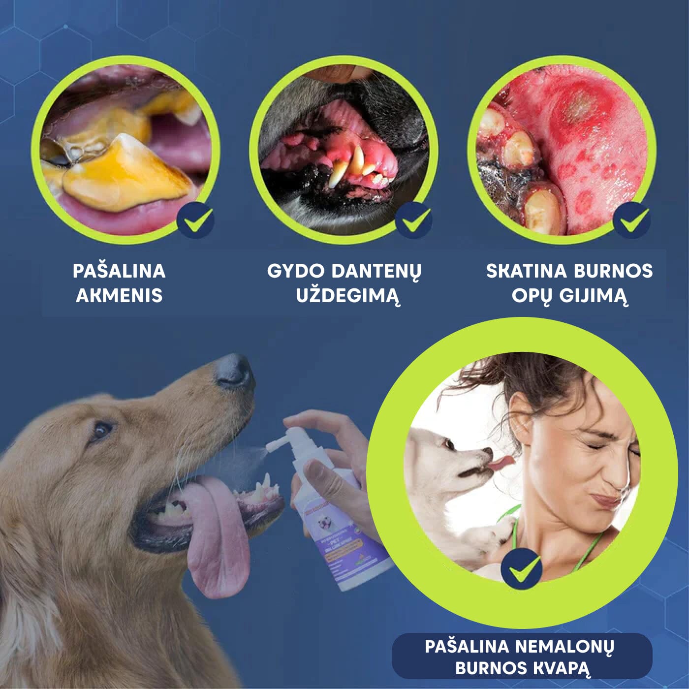 Šis burnos valymo purškiklis tai lyg magiškas eliksyras - apnašos, akmenys, bakterijos ir kt. nuo jūsų augintinio dantenų pradings lyg jų niekada ir nebūtų buvę, padarant dantis baltesnius ir sveikesnius!