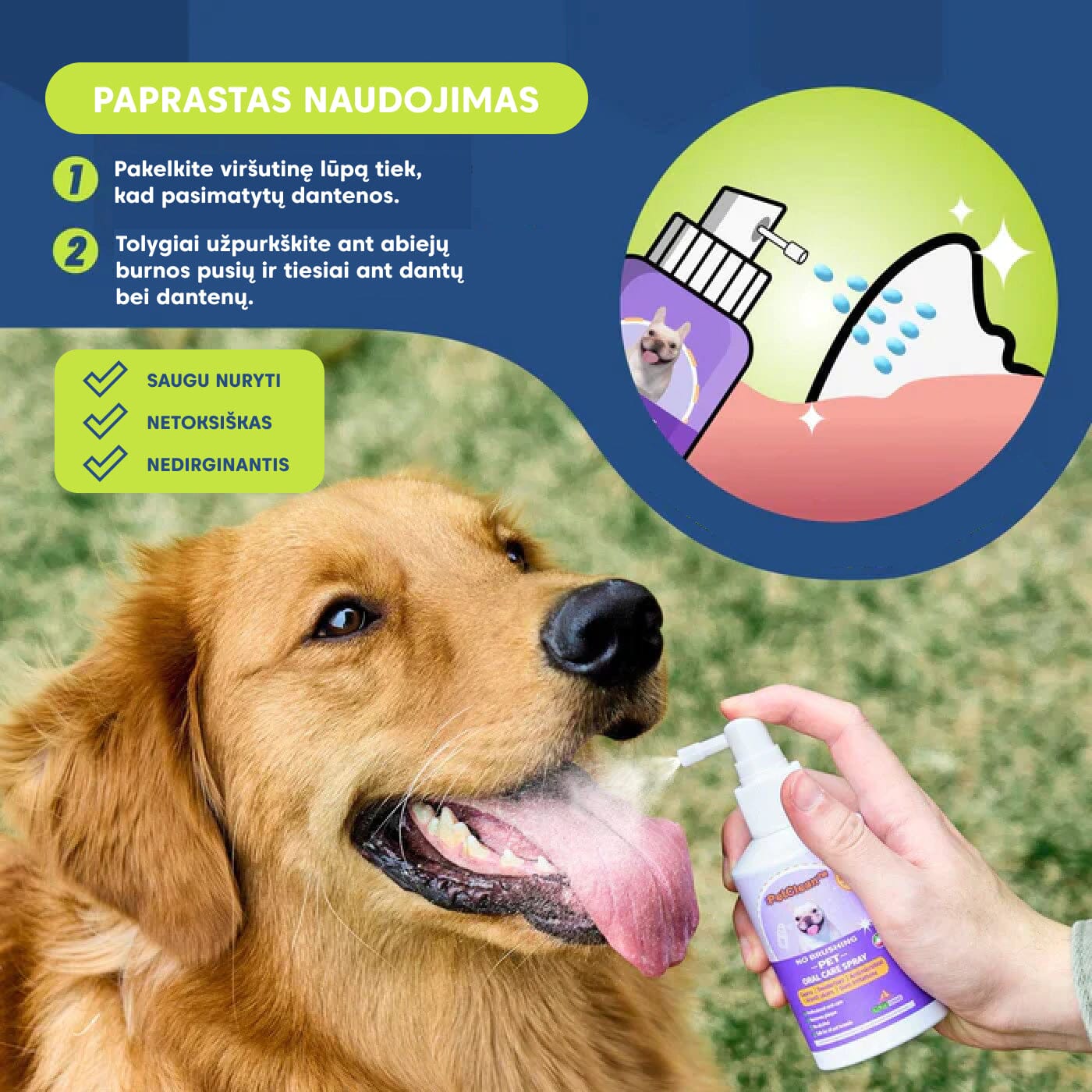 Taigi, manau sutiksite, jog atėjo laikas padovanoti savo pūkuotam draugui geriausią burnos priežiūros patirtį, kokią tik jis yra turėjęs! O su 100% natūraliais ir saugiais ingredientais – kiekvienas papurškimas tai tarsi SPA diena jūsų augintinio burnai!