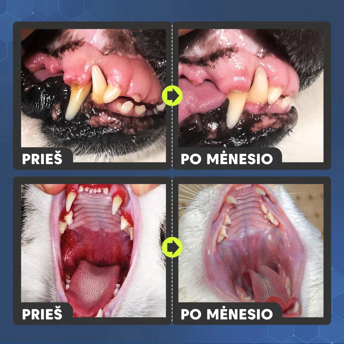 Gingivitas - tai periodonto ligos pirmtakas. Kadangi gyvūnai nemoka patys išsivalyti dantų, po daugybės valgymų jų dantenose kaupiasi begalės maisto likučių, kurie kaupia bakterijas, sukelia uždegimus ir skausmą. Šis burnos valymo purškalas gali užkirsti kelią gingivitui.